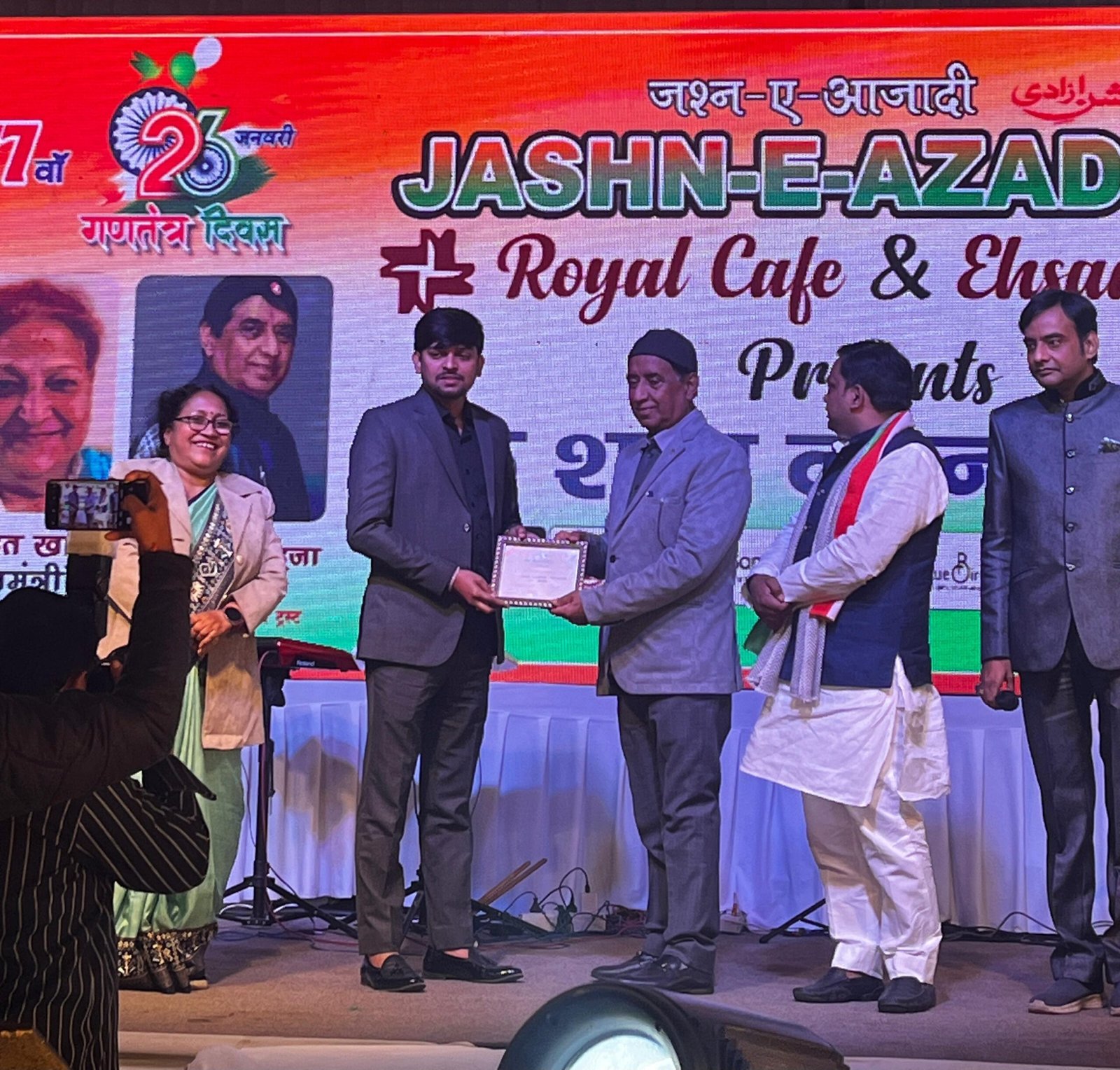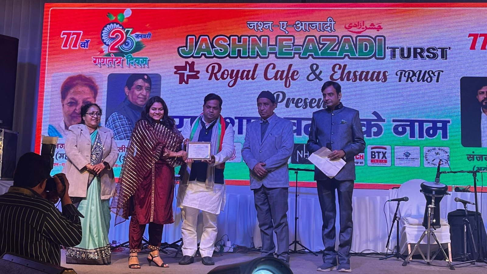लखनऊ | देशभक्ति से ओतप्रोत सांस्कृतिक संध्या एक शाम वतन के नाम”*क्लाइमेट पर चर्चा* की पूरी टीम को सम्मानित किया गया। यह कार्यक्रम जश्न-ए-आज़ादी ट्रस्ट द्वारा आयोजित, रॉयल कैफे एवं एहसान ट्रस्ट द्वारा प्रस्तुत तथा सन्मार्ग इवेंट एक्सपर्ट के सहयोग से संपन्न हुआ।