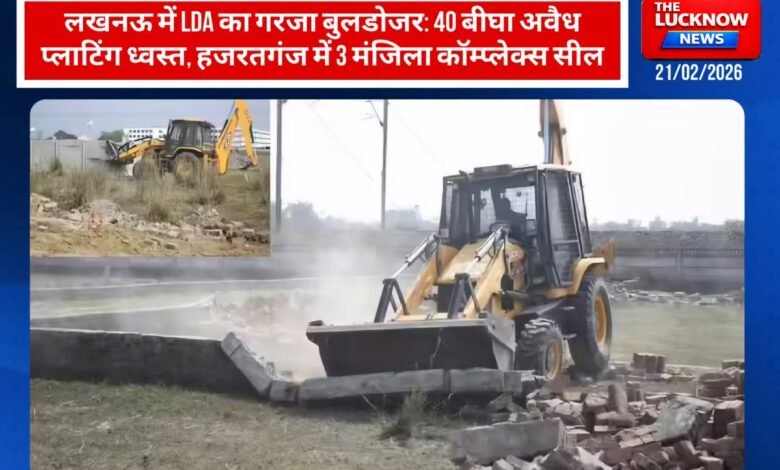 लखनऊ में LDA का गरजा बुलडोजर: 40 बीघा अवैध प्लाटिंग ध्वस्त, हजरतगंज में 3 मंजिला कॉम्प्लेक्स सील